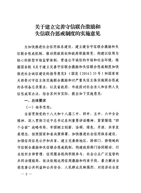 江苏省张家港市关于建立完善守信联合激励和失信联合惩戒制度的实施意见