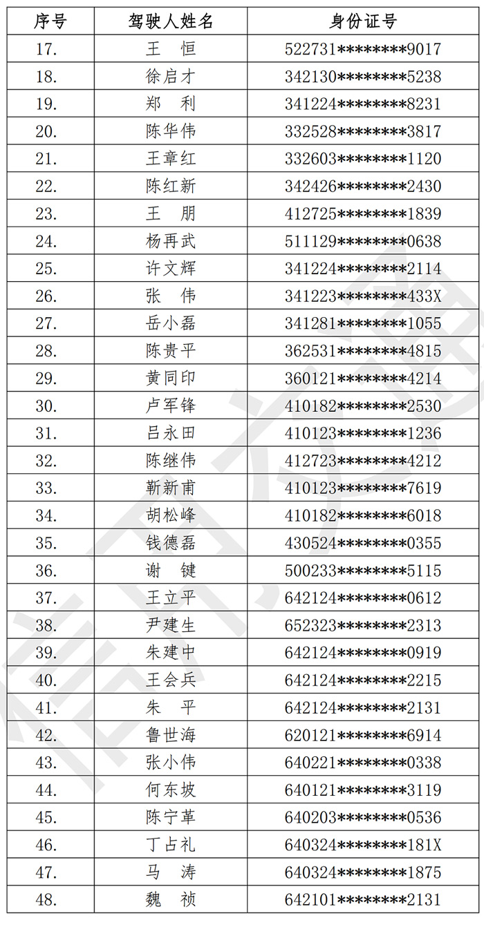 2018年第一批严重违法超限超载运输失信当事人名单发布