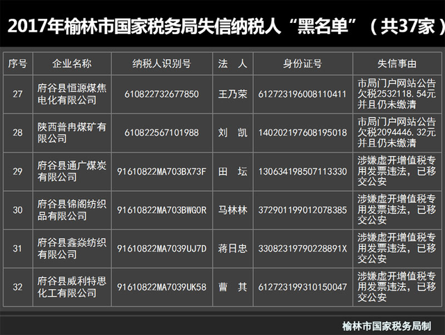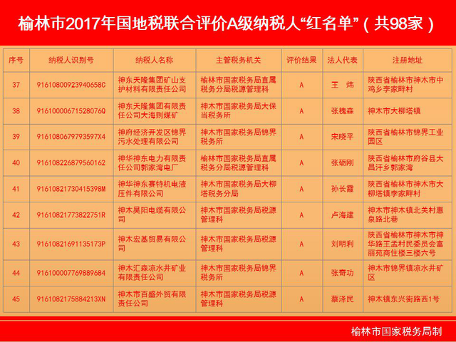 陕西榆林:公布98户A级纳税人 37户失信纳税企业列入“黑名单”