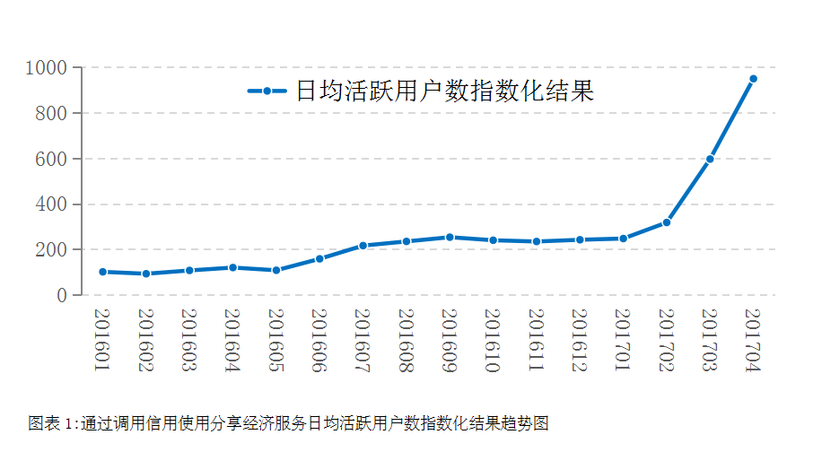 报告显示,2016年中国分享经济市场交易额约为34520亿元,参与分享经济活动的人数超过6亿人。2016年1月到2017年4月,我国分享经济用户数月均增长12.7%,日均用户活跃度增长了8.7倍。自2017年2月起,我国分享经济用户体量呈“指数级”爆发增长,今年也成为我国分享经济爆发年。
