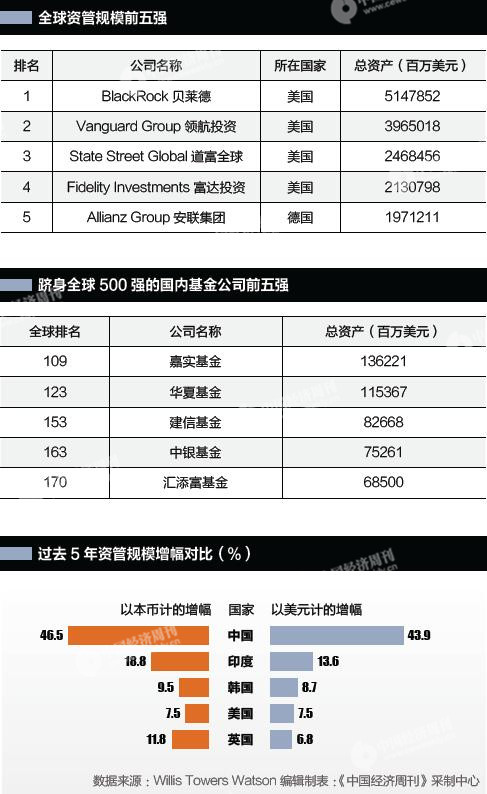 中国是一个蕴藏着巨大资产管理潜力的国家。10月末,国际知名咨询机构WillisTowers Waston发布了一年一度的资产管理全球500强报告。报告显示,截至2016年年底,全球500强基金管理人管理的总资产达81.2万亿美元,环比增长5.8%,而同期美国的GDP也只有18.6万亿美元。