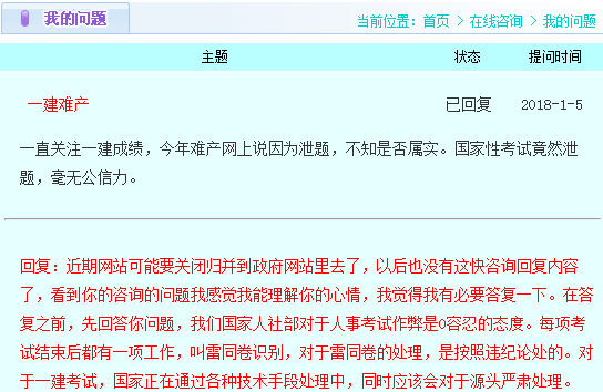 镇江人事考试网对有关2017年一级建造师泄题,“成绩难产”答复说明