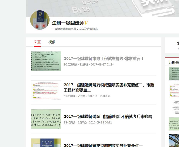 这份发布在《今日头条》名为“2017一级建造师市政模拟考点练习”的帖子,上面有十几张手写和打印版有关一级建造师“专业工程管理与实务”考试科目的内容截图。有考生表示,这些所谓“模拟题”的截图,实际就是真题答案:“没有题目,所以外行可能以为这是考试画重点,但参加考试的人一眼就能看明白,这是把答案直接写上去了。比如选择题,上面没有列出选项,只把题干和正确答案写成一句话。”